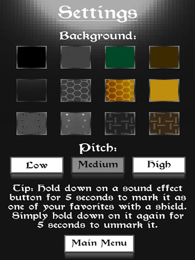 This soundboard app also has a favorites feature. Simply hold down the sound effect button you like for 5 seconds to mark it as a favorite with a shield. You can remove that sound as a favorite by holding down on it again for 5 seconds. There are no limits with how many sound effects you can mark as a favorite.