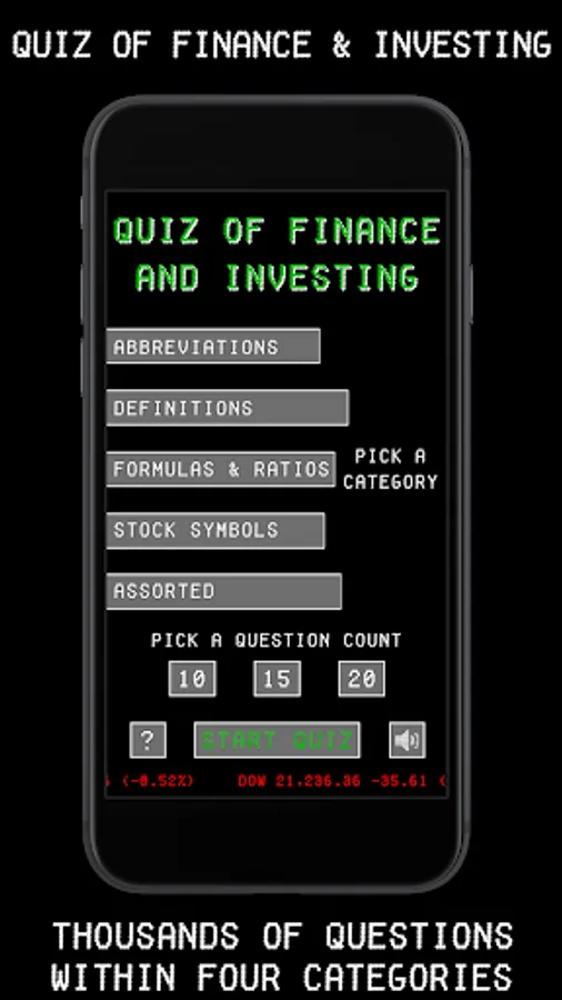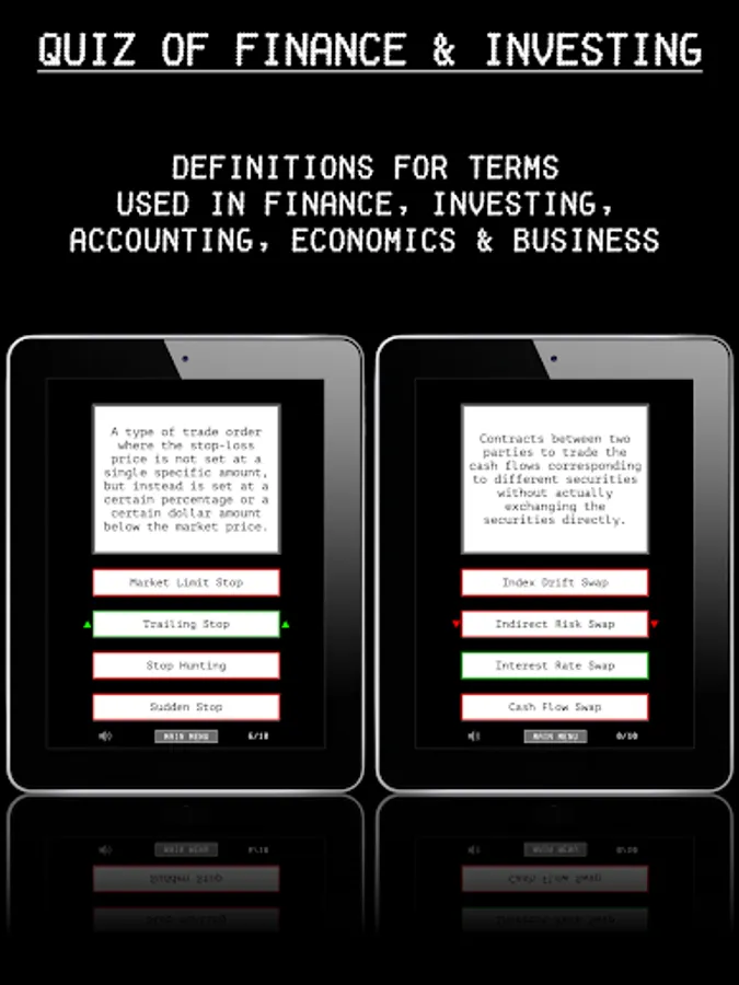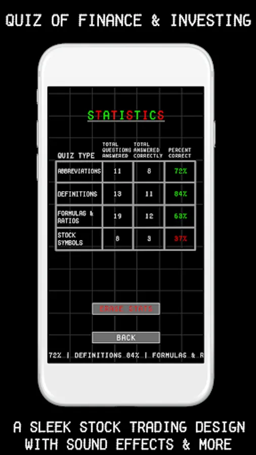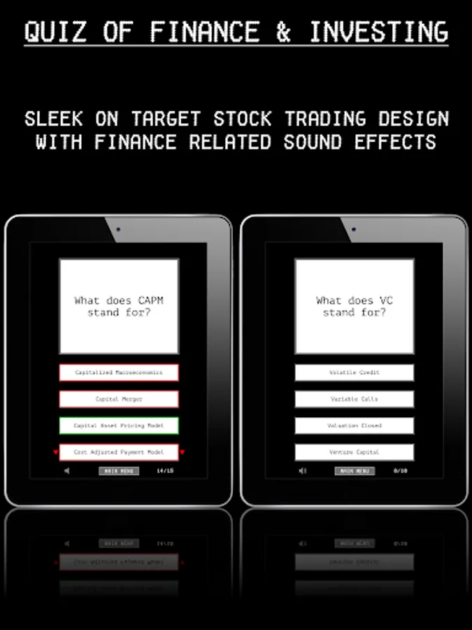 Quiz of Finance & Investing can also be used as a study guide to help college students with test exam prep. Whether you’re majoring in finance, accounting, or economics. This app touches on all of those subjects on the surface level and also in exquisite detail. Gain knowledge with this app and become your own financial advisor with investments. This app also has a statistics screen and financial related sound effects.
