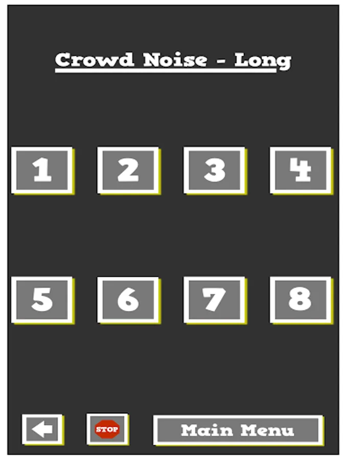 • Six categories: Bells, Crowd Noise, Fireworks, Horns, Whistles, & Other Objects