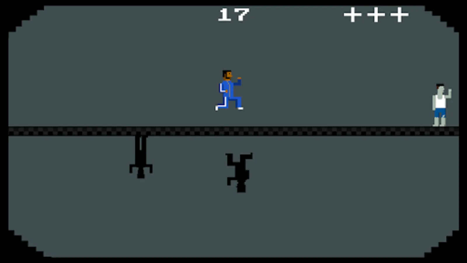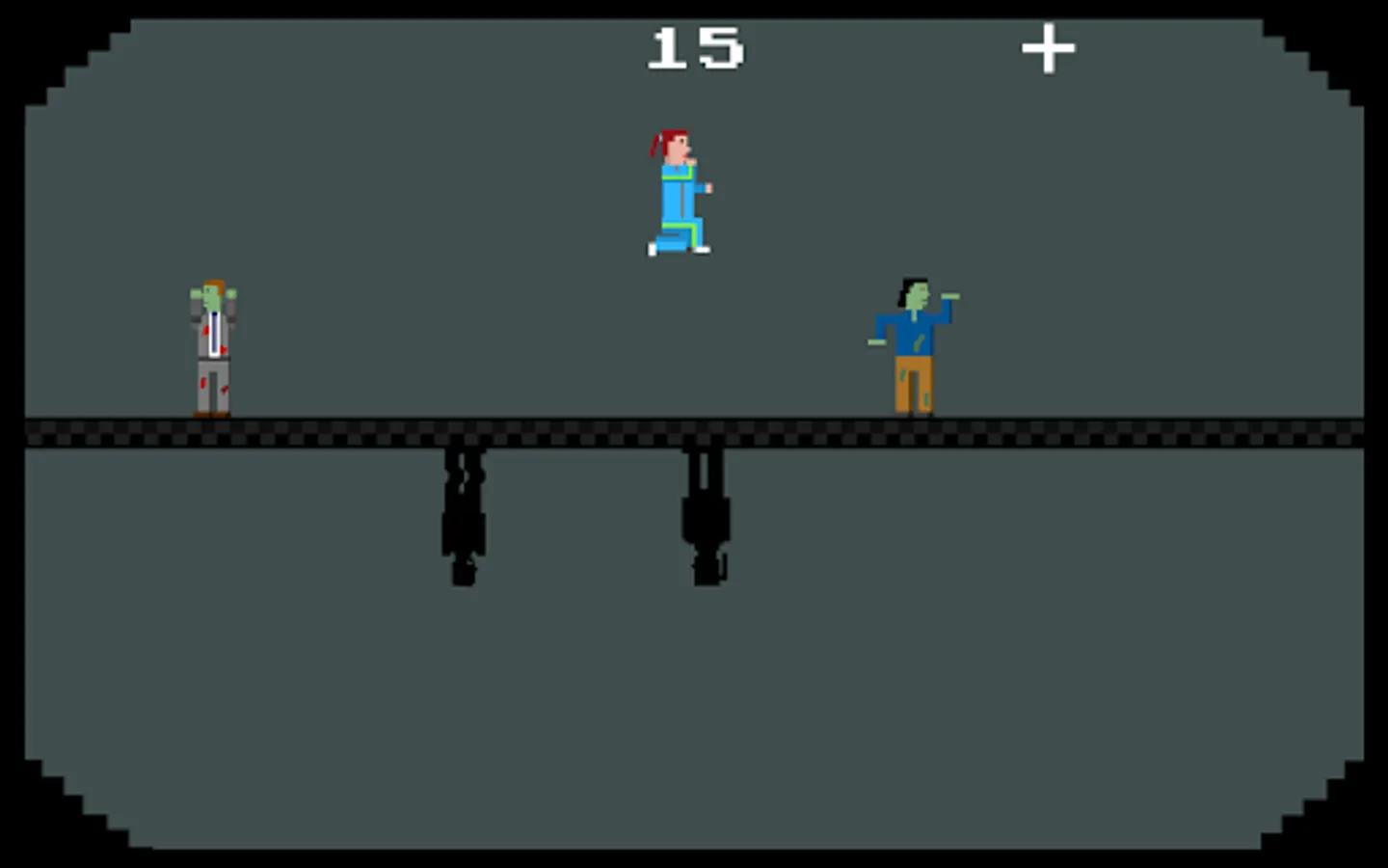 You've probably heard of the walking dead, and maybe even the running dead, but how about the dancing dead? Don't fear the dancing dead, jump over them! Zip up your tracksuit and see how long you can survive jumping over a hoard of blocky dancing zombies. The road to survival in this game is to jump & double jump to avoid zombies. Eat a granola bar to add health and continue jogging on the moving highway. Simple yet challenging game play.