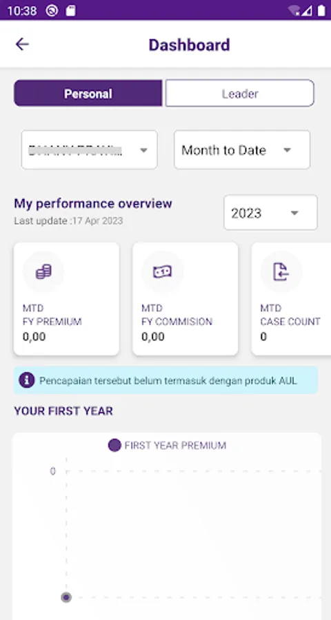 Dashboard, berisi informasi perihal FYP, FYC, Case Size dan Case Count