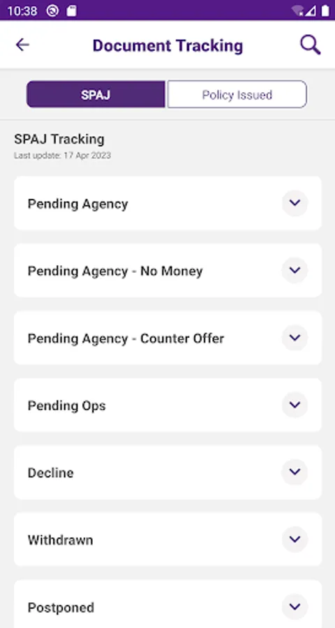 Document Tracking, informasi pengajuan SPAJ dan Policy yang sudah issued
