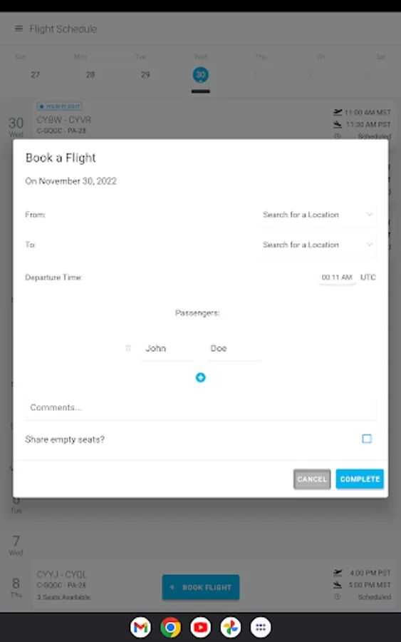 Welcome to the AeroNet Aviation flight scheduling app. Take the "left seat" when it comes to your schedule.