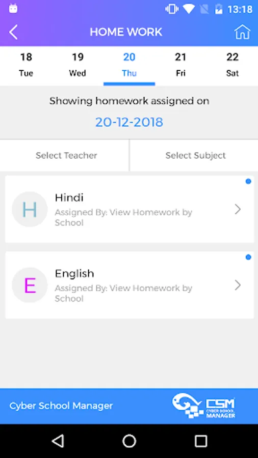 Cyber School Manager App provides Students and Parents engagement with School and Teachers in a very efficient manner. Parents gets regular Alerts and Notifications. Student daily Attendance and Activity details is available. Student Fee Details, Online Fee Payment, Result & Analysis, Report Card Generation is just a click away.
