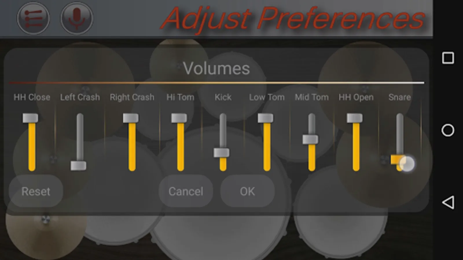 - Tweak the volume of each individual drum to your preference