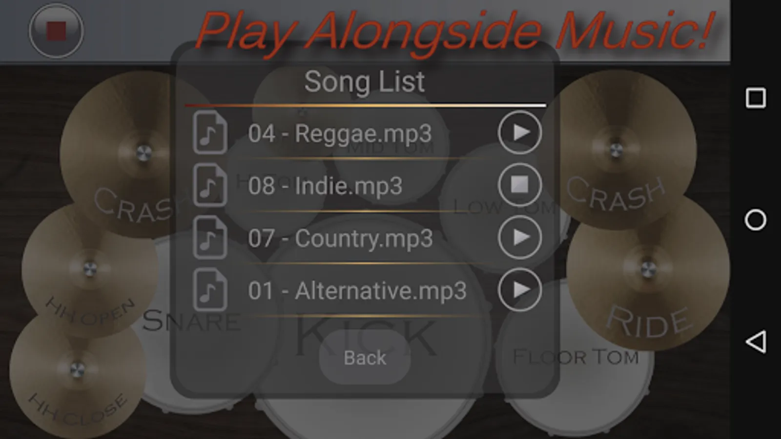 - Play alongside song tracks already on your phone