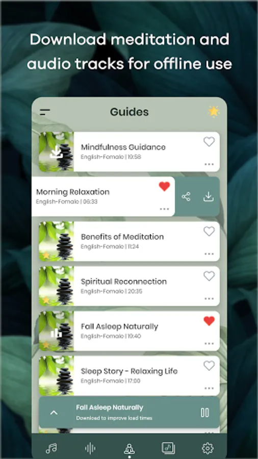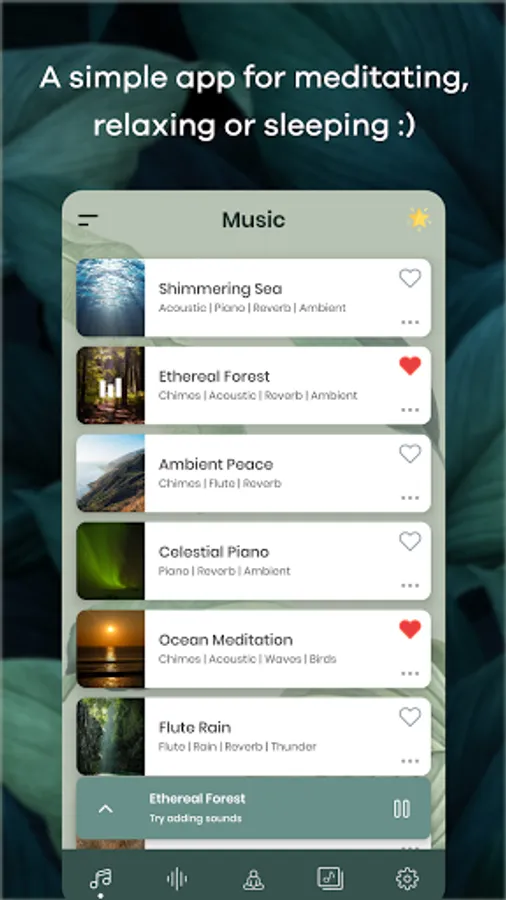 Meditation music is a free meditation app to relax the body and mind. Enjoy listening to the beautiful meditation sounds that will aid you in finding inner peace, helping reduce stress and even to fall asleep. This meditation music app also comes with a meditation timer to allow for easy time management so you can solely focus on your guided journey into a deep meditation state of mind. The timer will continue to work in the background while the phone screen is off or pause itself when a call is being received. Included with these relaxing sounds are background pictures that capture a calm atmosphere for your meditation needs--ranging from waterfalls to zen gardens. Finally, a playlist feature that allows you to choose which songs you would like to hear and for how long. You can create a different playlists for sleep, yoga, to relax and more. On top of this there's the ability to add your own songs from your phone to be added in the playlists.