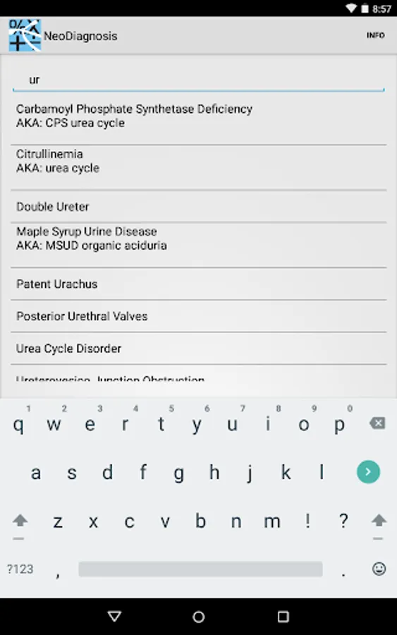 This app was created by neonatologists keeping in mind the kind of informational resources one needs during a typical day in the NICU. Towards that goal we have included over 700 diagnoses relevant to neonatology. For each diagnosis you will find quick links to Pubmed, images, ICD codes and Wikipedia article relevant to each diagnosis. All these links open within the app making it easy to quickly access information without ever having to leave the app. In addition we have tried to include a short description of each condition.
