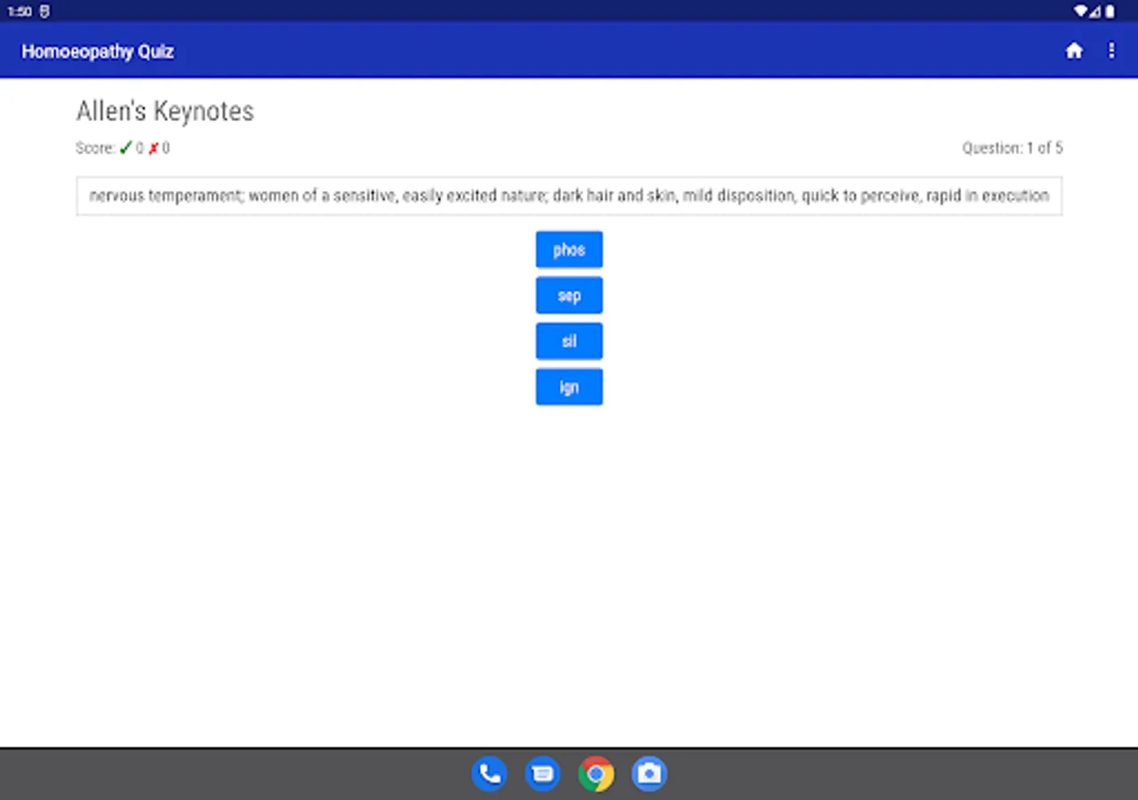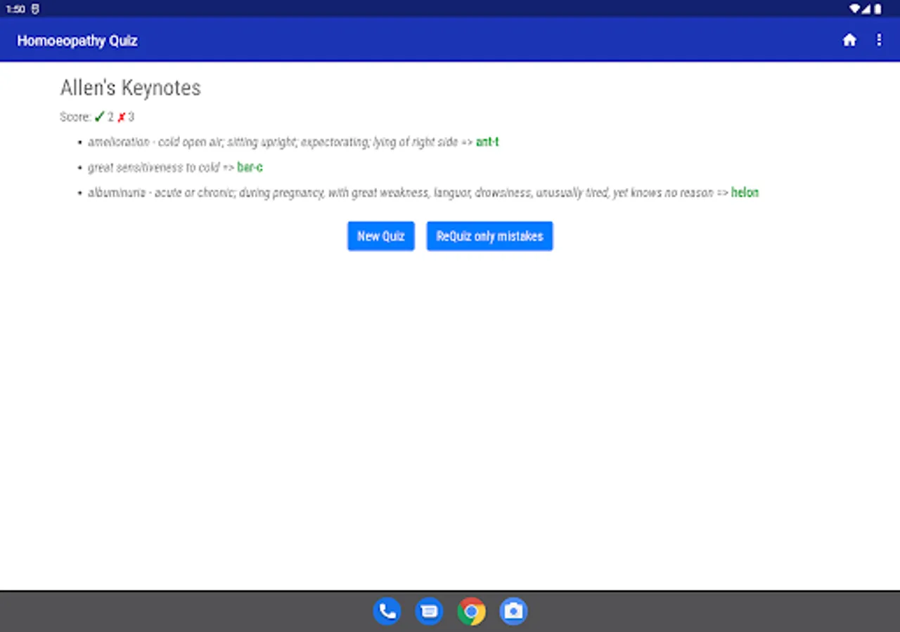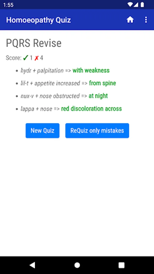 HQz comprises of a collection of quizzes, each one a little different from the other. The main quiz is based entirely on Allen's Keynotes. These quizzes are not only for students, who absolutely need something of this sort, but also for practicing doctors. Regular practice for 10 mins will dramatically improve the quality of Homoeopathy practiced the world over. You can also ReQuiz only your mistakes.