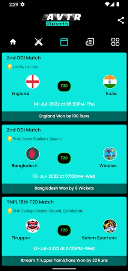 Avtr Cricket Live line provide you accurate information for all live cricket matches with Ball by Ball, Scorecard and Match Odds.