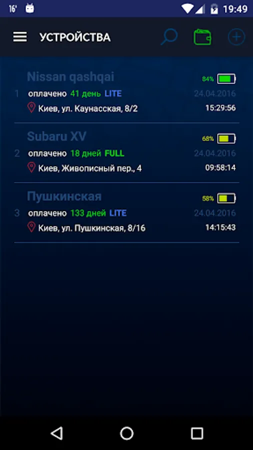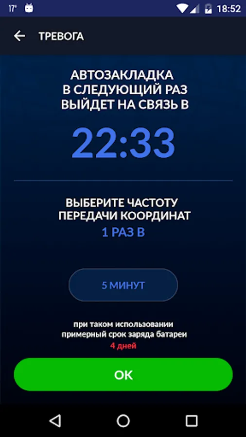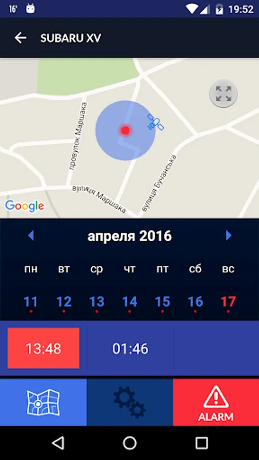 The application will inform you of the release of the connection of your device once or several times a day, push notification, and in case of theft will make it possible to set the alarm mode quickly and provide leaving a private security company to return the stolen car.