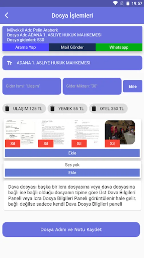 Note application for lawyers to keep client case files and expenses.