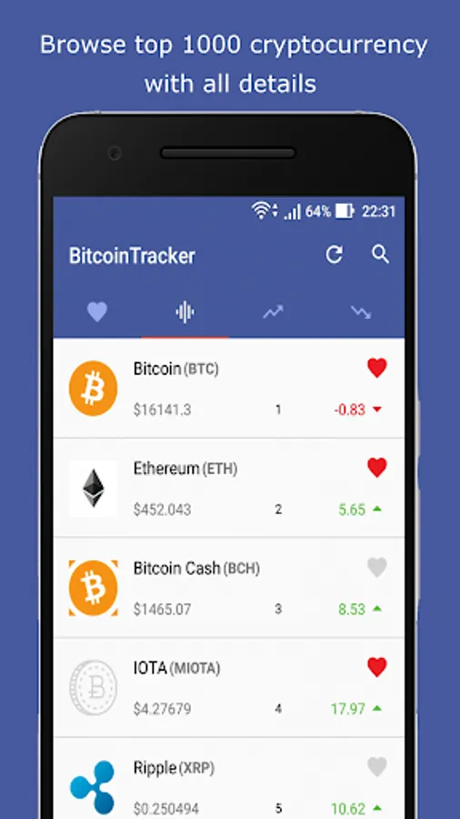 Bitcoin Tracker is a cryptocurrency live rate tracking app using which you can keep track of top 1000 currency available in cryptocurrency market. You can track price , growth rate , market cap and almost all necessary data for cryptocurrency trading. For Bitcoin lovers this app also have a price widget with live price update. Track live rate of bitcoin as well as alt coin. This app also have a crypto forum where you can share your ideas and you can know price predictions of bitcoin and alt coins from other crypto experts.