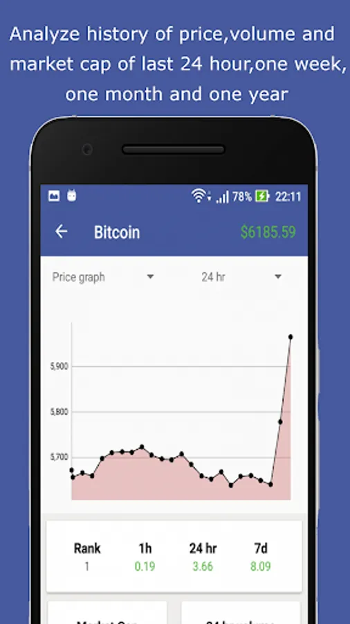 ★ Advanced Charts for pro traders where you can see and interact with line graphs. You can also see volume, price and market cap of 24hr, One week ,One month ,Six month and One year