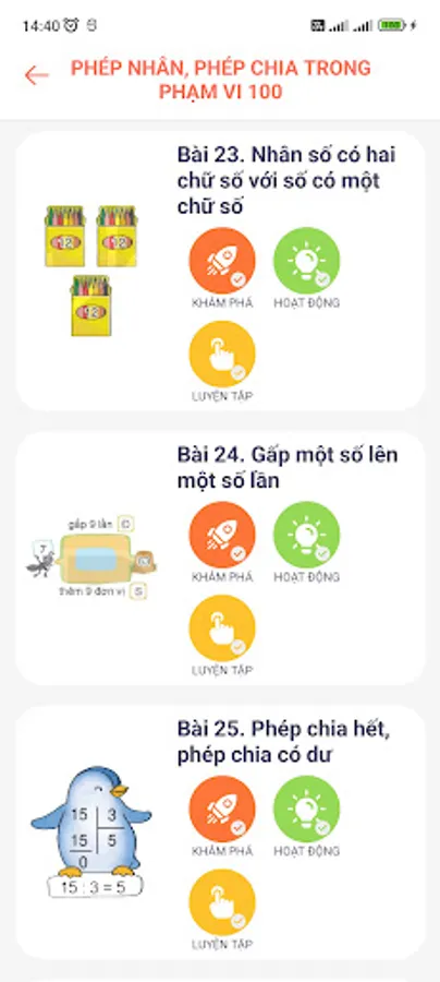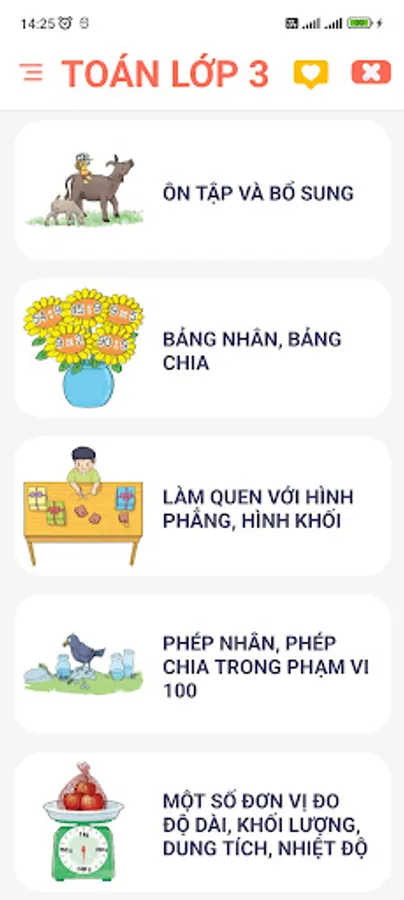 The application is modeled on the Grade 3 Math program of the Ministry of Education and Training with vivid, funny and attractive sounds and images.