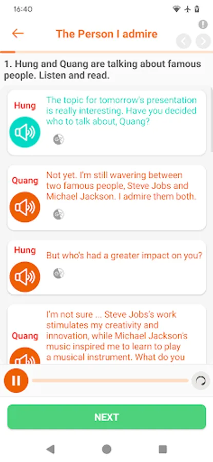 The "English Skills" application helps you use language materials: pronunciation, vocabulary, grammar to develop communication skills in English in 4 forms of listening, speaking, reading, and writing.