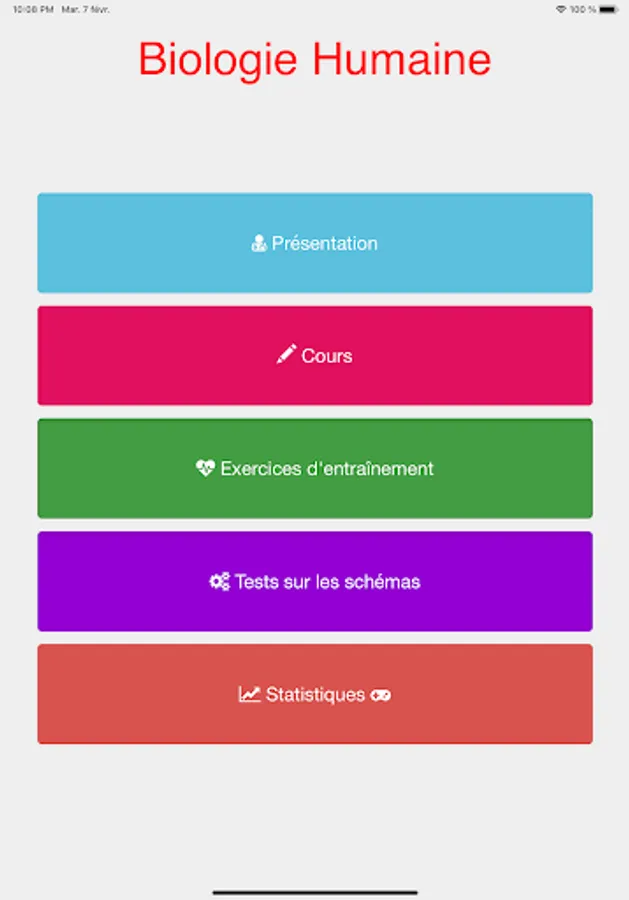 Human Biology is an application that allows you to simply learn the functioning of the different systems of the human body and the main organs that compose them. This application is composed of clear courses illustrated by numerous diagrams.