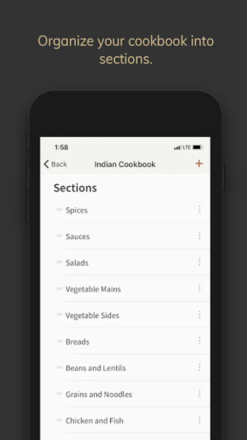 Build your own cookbooks by cuisine, by diet, or by whatever you desire.