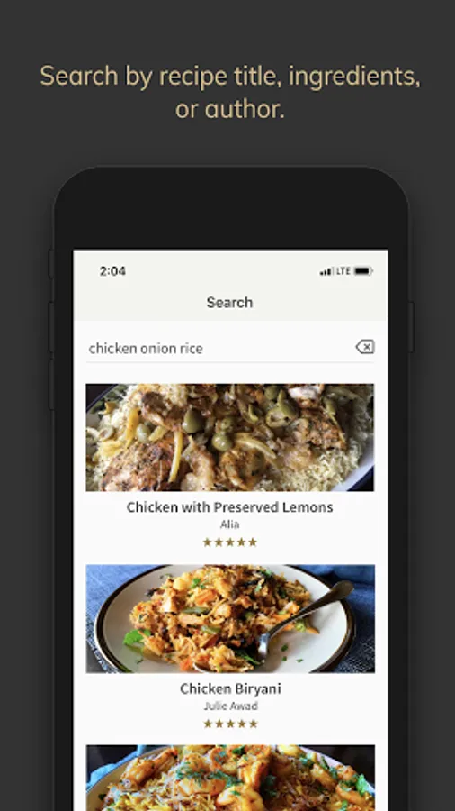 Search by recipe title, ingredient, or author.