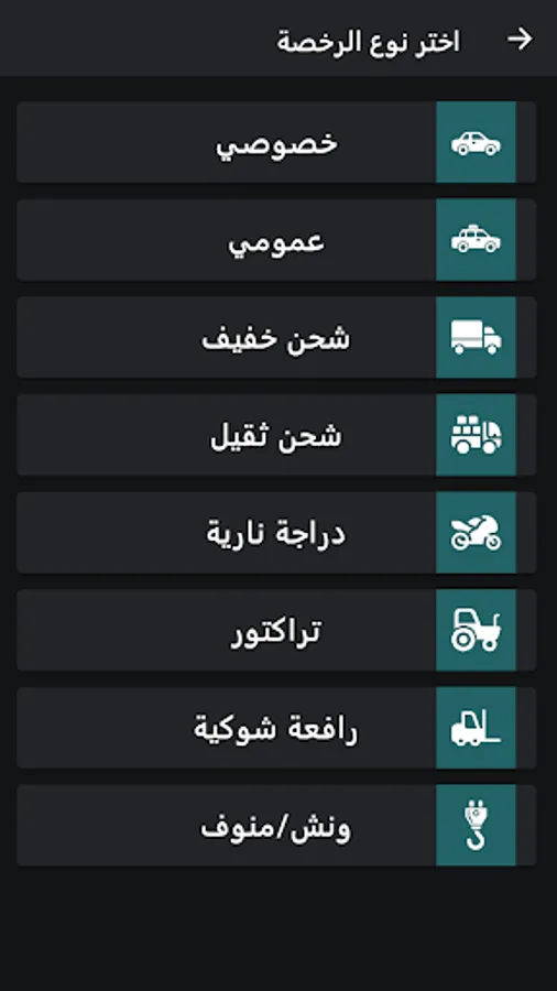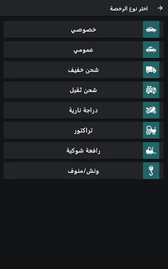 تطبيق اختبارات التؤوريا خصوصي، عمومي، شحن، دراجة، تراكتور وشحن ثقيل