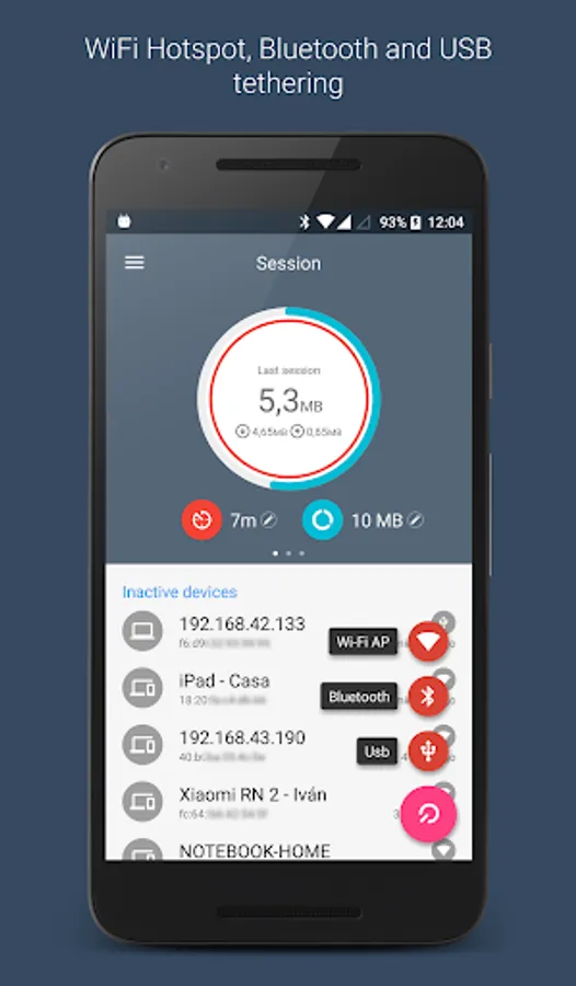 Control and share your Internet connection of your smartphone with your laptop, tablet or another smartphone.