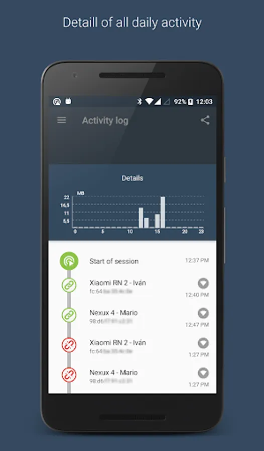 ★ Daily data usage chart, with detailed information about every tethering event and per-hour stats.