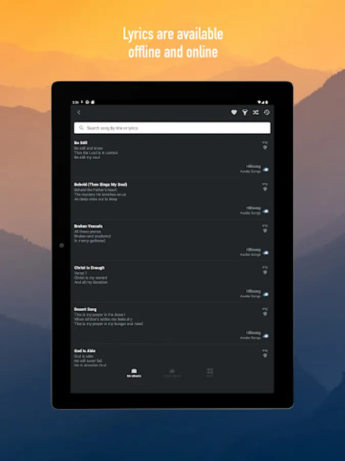 Awake Songs is not just a collection of Christian songs, it is primarily a convenient tool developed for churches, organizations, worship groups, for you to create your own albums, add songs, chords and share those with people. Your albums will be available to anyone who has Awake Songs. People can subscribe to albums to be notified when you add, change or delete songs. Thus, users will always have the latest albums.