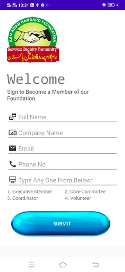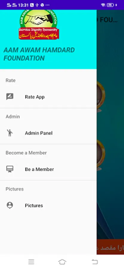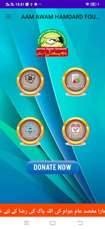 01-Projects(mean what are our purposes regarding our work) 2-Contact us 03-Memberlist(There different types of people in this section) 04-Events(this is for different pictures) 05-Admin Panel etc. These are all buttons in this App, also pictures of different members are too available. There is beautiful splash screen for providing user-friendly environment. The functionality of APP is so simple that every one can understand use of this app & if he wants to contact with Chairman then he can contact with him through his mobile numbers & as well as Whatsapp number. This app is just developed for advertisement/promotion of Aam Awam Hamdard Foundation.
