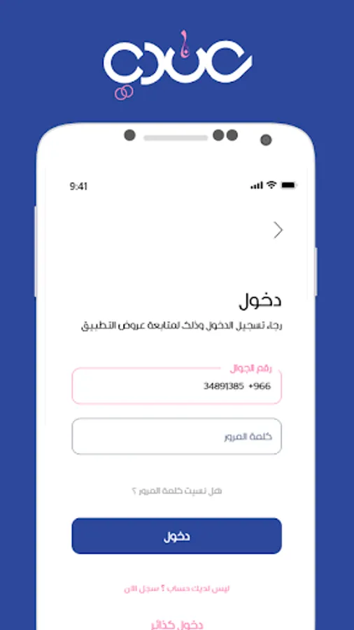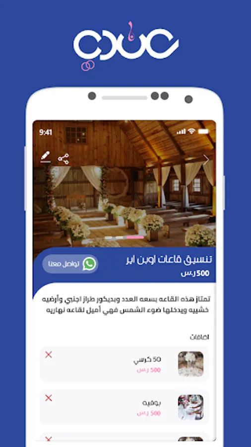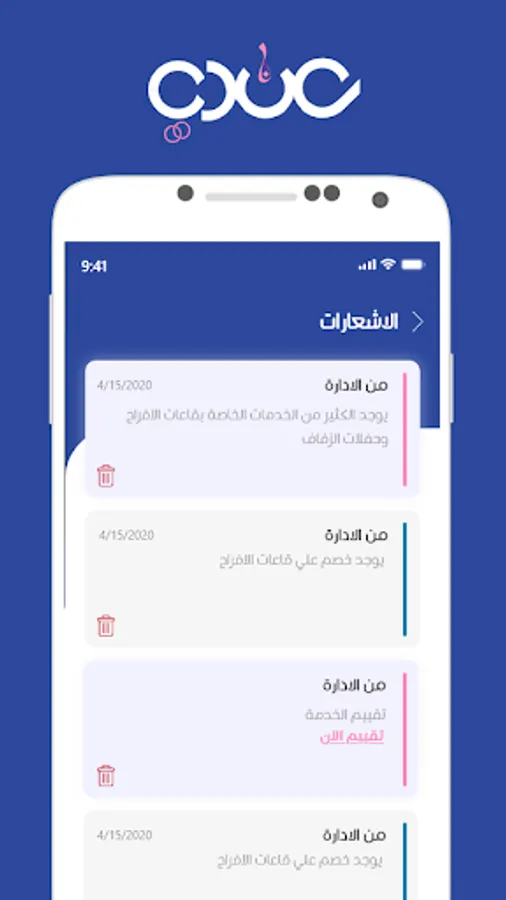 تطبيق عندي للحفلات والمناسبات وسهولة تقديم الخدمات والتواصل مع المنشأت ذات العلاقة والحصول على الخدمة المطلوبه