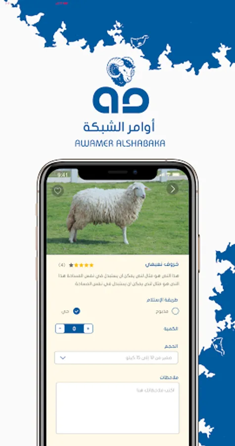 It is an intermediary application between the users and the administration of the application directly, where the users specify the orders they want from the carcasses and specify the quantity and required details, then the user enters his data and determines the method of payment and sends the request to the administration, until the request is approved and terminated through the special control panel App.