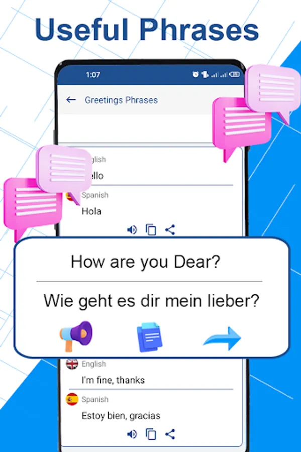 - Daily used phrases there are different categories so that user can find easily required phrases easily.
