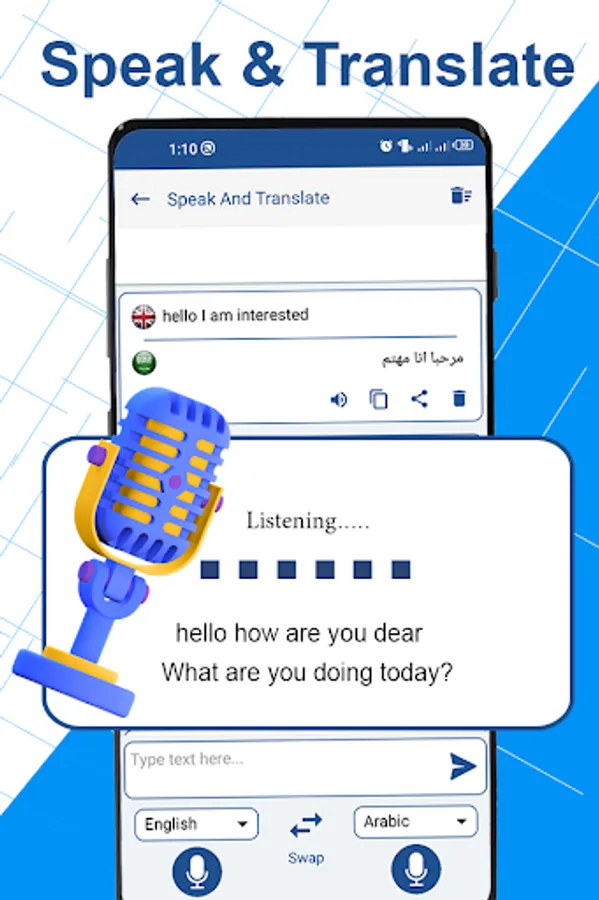 There are always people who face problems while communicating with other people that dont know your language, so we developed an app Voice Translator that will surely help you to communicate with your friends that are from another country or region. Voice translator is very easy to use and voice translator solves most of your problems to communicate with others, language-speaking persons. We know its always tough to write for most of the people who wants to communicate, so we added feature of Voice translations so that you can easily translate via voice to any other language.