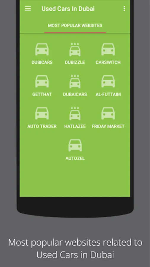 This application can help you find the best car deals that are currently on the most popular car websites in Dubai - UAE with latest and biggest collection used cars. A very useful application for car enthusiasts who like to have most popular car websites links in a single application.