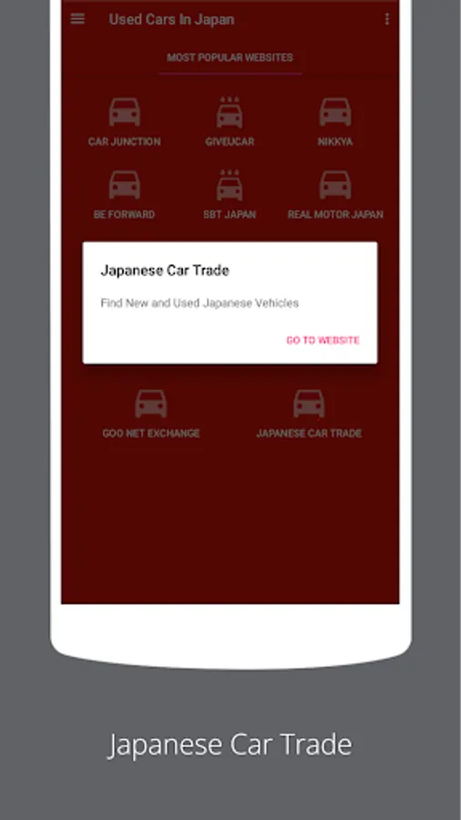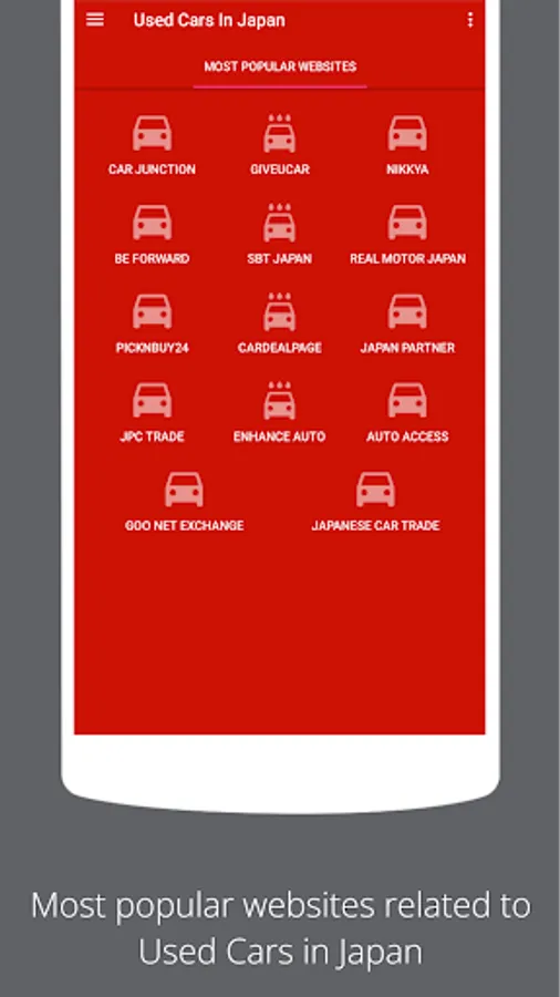 This application can help you find the best car deals that are currently on the most popular car websites in Japan with latest and biggest collection used cars. A very useful application for car enthusiasts who like to have most popular car websites links in a single application.