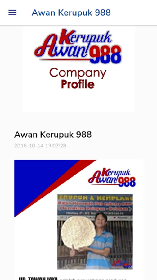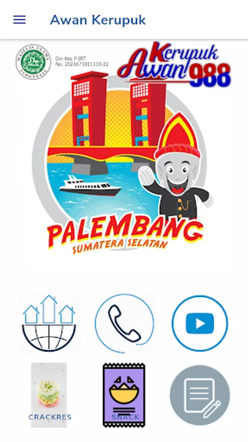 Awan Kerupuk 988 adalah Produsen Kerupuk Kemplang Palembang yang memproduksi Kerupuk Kemplang Palembang, Seperti Kerupuk Kemplang, Kerupuk Sanggul, Kerupuk Mawar, Kemplang Bakar, Kemplang Bintang, Kerupuk Jambu mini
