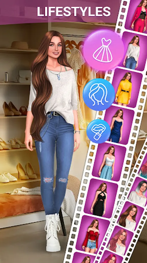 And you yourself decide how the main character will look. Our game Visual Stories enable you to choose the outfit, hairstyle, makeup you like the most for the main character – and to change these features throughout the story whenever you want!
