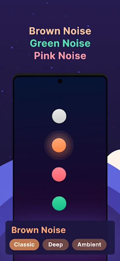 • Pink Noise is balanced like rain sounds. We recommend pink noise for sleep and focus.