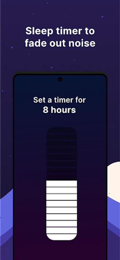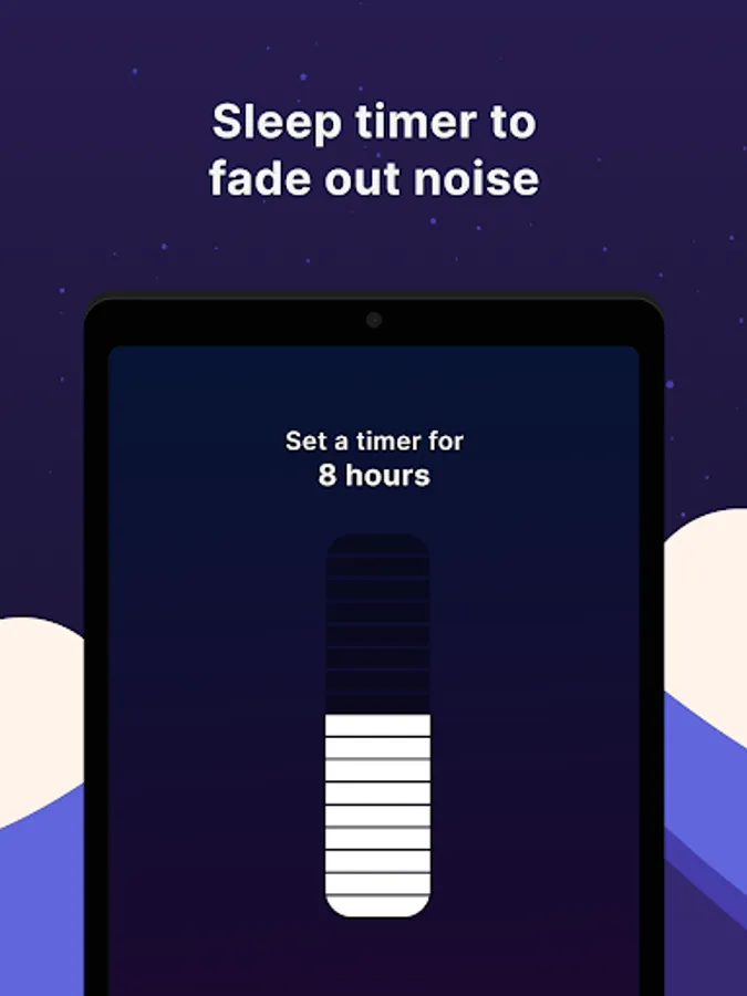 Noise Machine features a sleep timer to fade out after a specified time. Some people like to fall asleep to soothing sleep sounds, but prefer them to fade during sleep. Set a sleep timer and the sleep sounds will fade out very slowly, ensuring your sleep is not disrupted.
