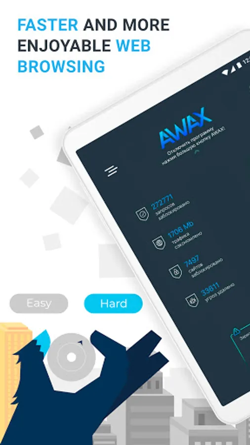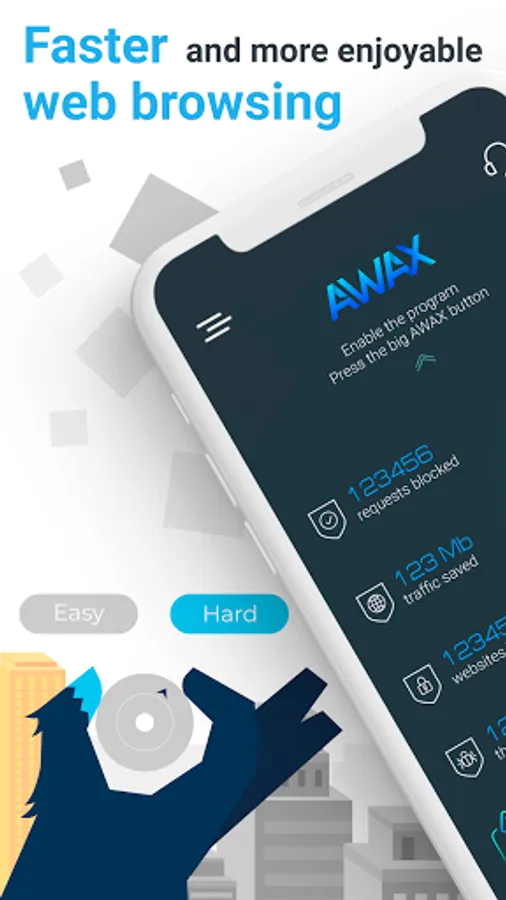 AWAX ad blocker uses a local VPN connection and special filters that weed out malicious links. We have developed our own AWAX algorithms that efficiently save data usage and battery life on your device. This approach is possible by creating a local VPN server on your phone. Unlike free services of a similar format, we do not collect data for transmission or sale to third parties. We use fair formats of cooperation and monetization, providing you with only the requested service and necessary features instead of profiting from users' confidential information.