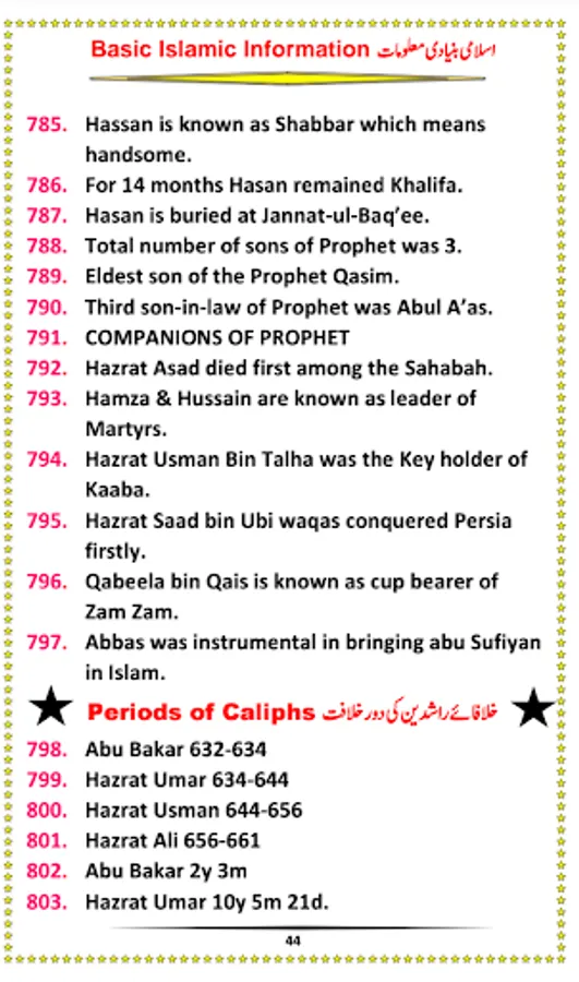 Nimaz ,Roza,Zakat,Hajj, khalifas of Islam.Othe