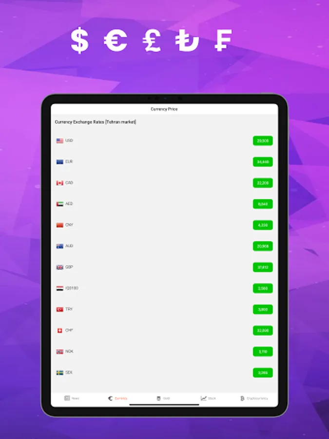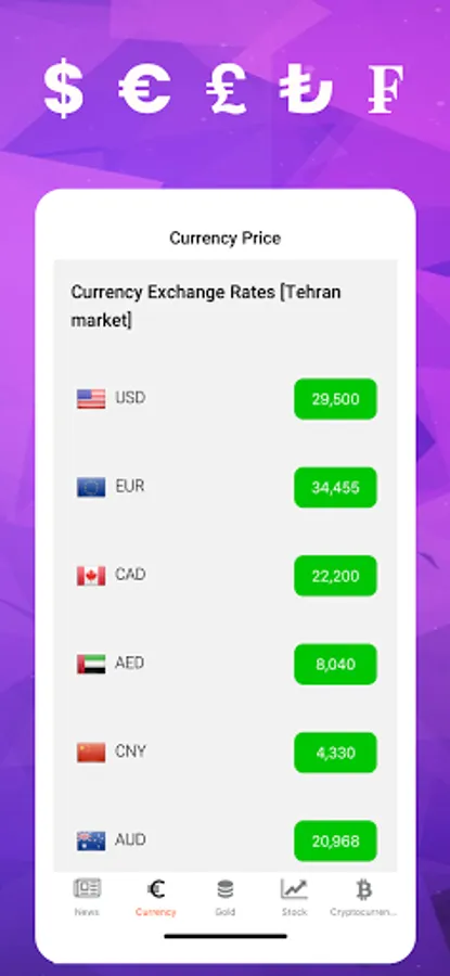 Mesghal App is also one of the most well-recognized app when it comes to checking the most accurate currency rate. Using this app, you will be aware of day-to-day currency rate of more than 30 countries such as: