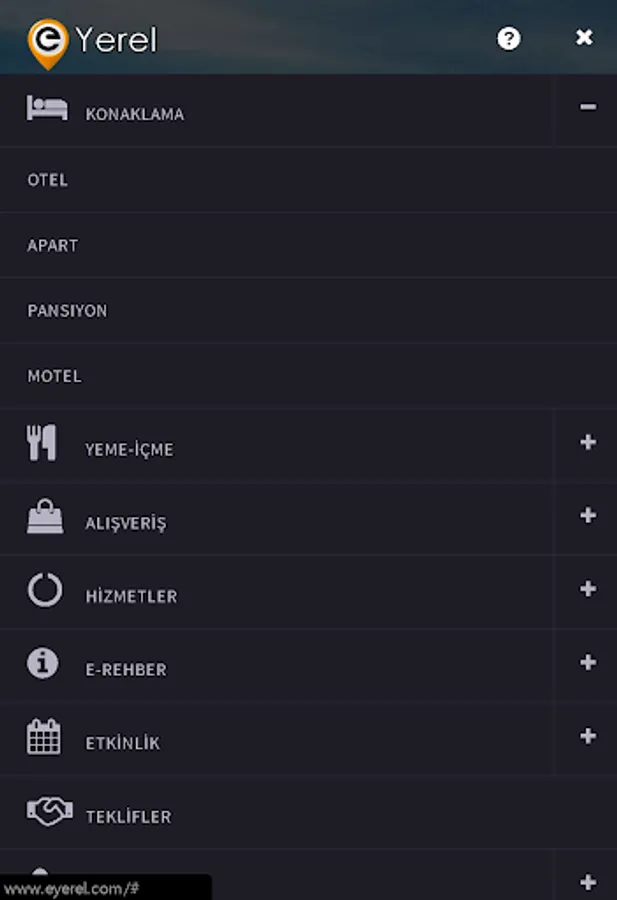 Our application, integrated with eYerel.com site, allows you to view the current list of local businesses in your area, their contact information, the opportunities they offer and their shares.