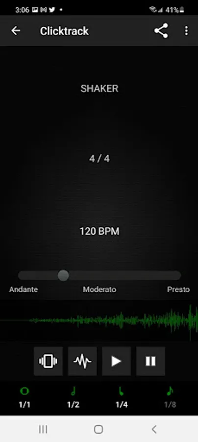Vibration is a great way to use a metronome. Place your phone on a drum, table, or even against your guitar to hear the vibrations while you play. Turn volume down to minimum to use stand alone vibration for your click track.