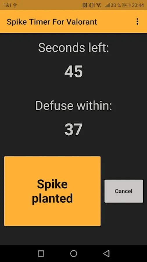 The app shows you the remaining time until the spike explodes and the time that is left to start defusing the bomb.