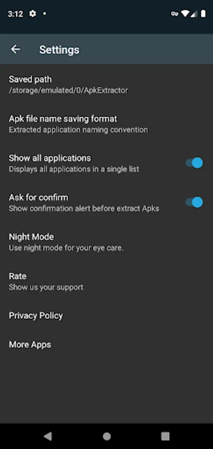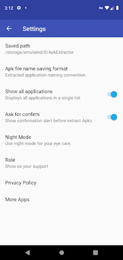 • Extracted apk is saved in Primary Storage/ Apk Extractor .