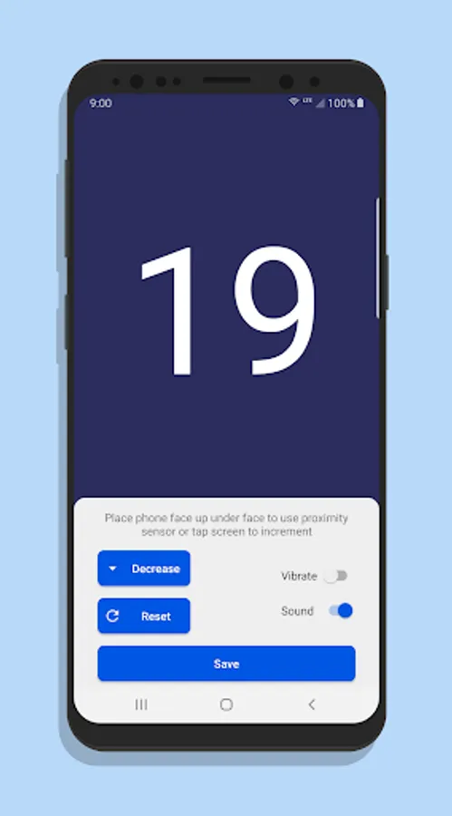 • Proximity enabled counter (Phone must have a proximity sensor built in)