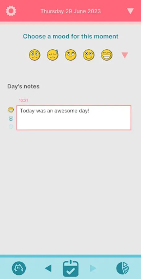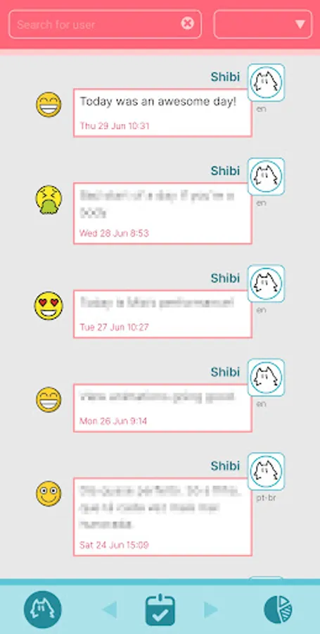 6 - Can post directly from the social tab. Those messages will not appear in your daily and graph tabs. Choosing a daily mood can still be published as before; Languages are grouped and the list is now more compact; Images are now zoomable, now you delete your local post by choosing the trash can icon, not long pressing the post anymore; NSFW tag issue fixed, was not showing properly; update mood sets (emojis) process is improved; New option to call for an update from the settings menu; Bottom menu bar tiny issue fixed, was not showing properly; If message is repeated and refused by the server, it doesn't save it locally like before; Keyboard hide and show methods tweaked; Social tab filtering improved.
