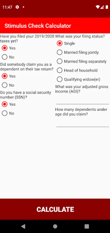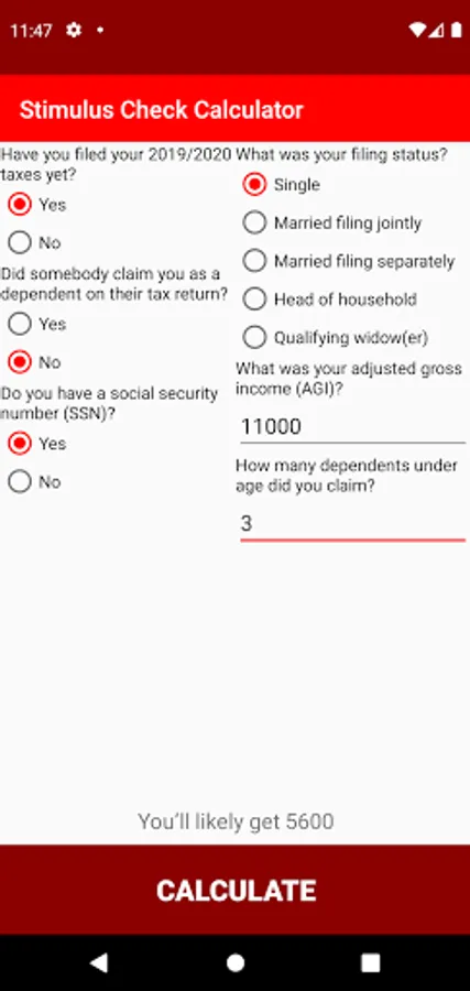 Stimulus Check Calculator checks to see if you qualify for the US Government Stimulus Check.