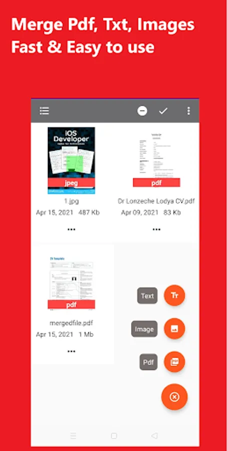 PDF Merge Pro is a simple and fast PDF Combiner to merge or combine pdf, text, and images into one pdf file that can be easily open and shared. The thumbnails of input files are available so you are able to order items easily.