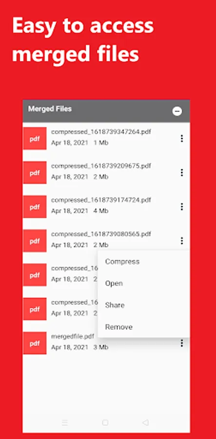 4. The result file will be displayed in Merged Files list where you can open, compress, and share it.